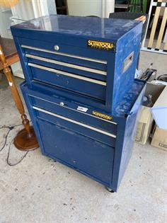 Router bench with container of accessories