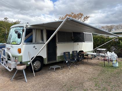 1989 HINO AC SERIES 7000 Motorhome Manual White VEHICLE & MACHINERY VIN: JHDAC140KXXX40429 424039 Odometer Shows: showing Fuel: Diesel Double Bed, Reverse Cycle Air-conditioning, Fridge/Freezer, Microwave, Solar Panels, Full off grid, sink with flowing water, Selling unregistered