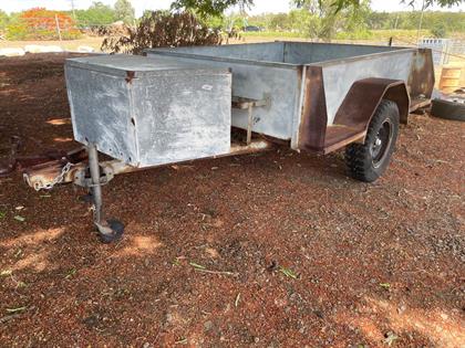2010 TELWATER CBOX 749kg 7x4 Trailer VEHICLE & MACHINERY VIN: 6HWCAMPERAC808119 Ex-Camper, As new hitch, solid wheel, jockey wheel, water/jerry can holders, gas bottle holder, water tank, Selling unregistered