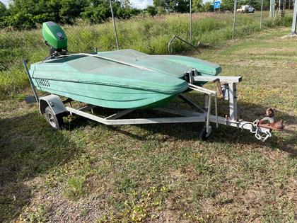 750 Boat & Trailer White / Green VEHICLE & MACHINERY VIN: 6F9T22000526U7001 Fuel: 4 Stroke Savage Boat Snipe MKII - 90th Anniversary on 1995 Homemade Boat Trailer with 15HP Honda Outboard, Electric start, Selling unregistered